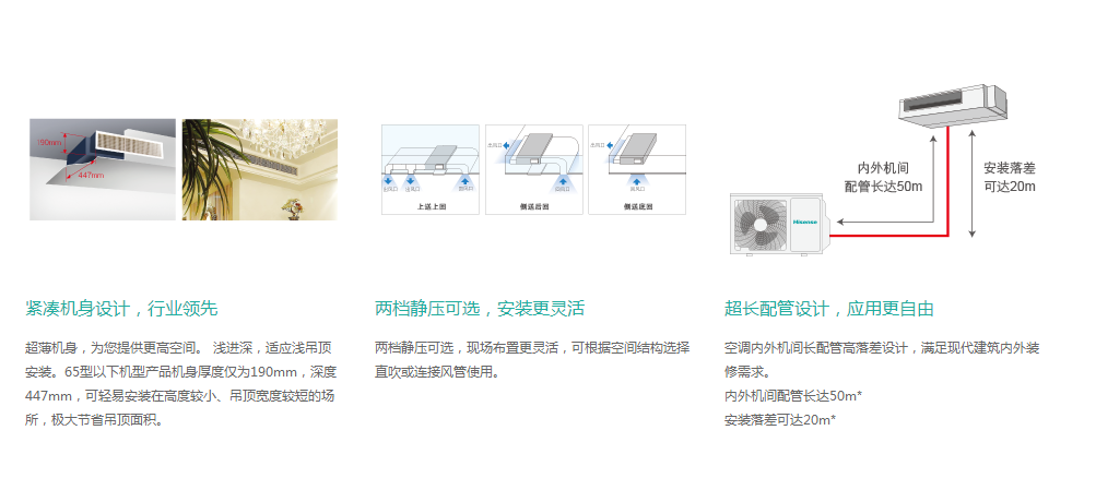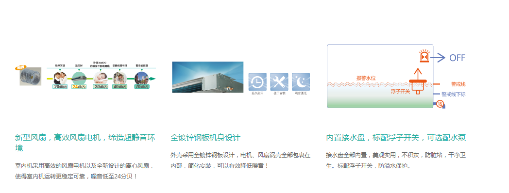 緊湊型機(jī)身設(shè)計(jì),行業(yè)領(lǐng)先者兩種靜壓可選,安裝更靈活新型風(fēng)扇,高效風(fēng)扇電機(jī),創(chuàng)造超靜音環(huán)境GB/T1497-1989室內(nèi)機(jī)組全鍍鋅鋼板機(jī)身設(shè)計(jì)內(nèi)置水接線板,標(biāo)準(zhǔn)浮子開關(guān),以消除潛在的泄漏危險(xiǎn)超長管道設(shè)計(jì),更自由的應(yīng)用